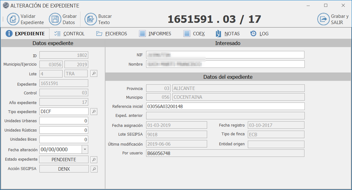 Edición de expedientes, A cada expediente se le asignarán los textos, parámetros y ficheros (informes, FX-CC, SAUCE) necesarios para su correcta resolución.